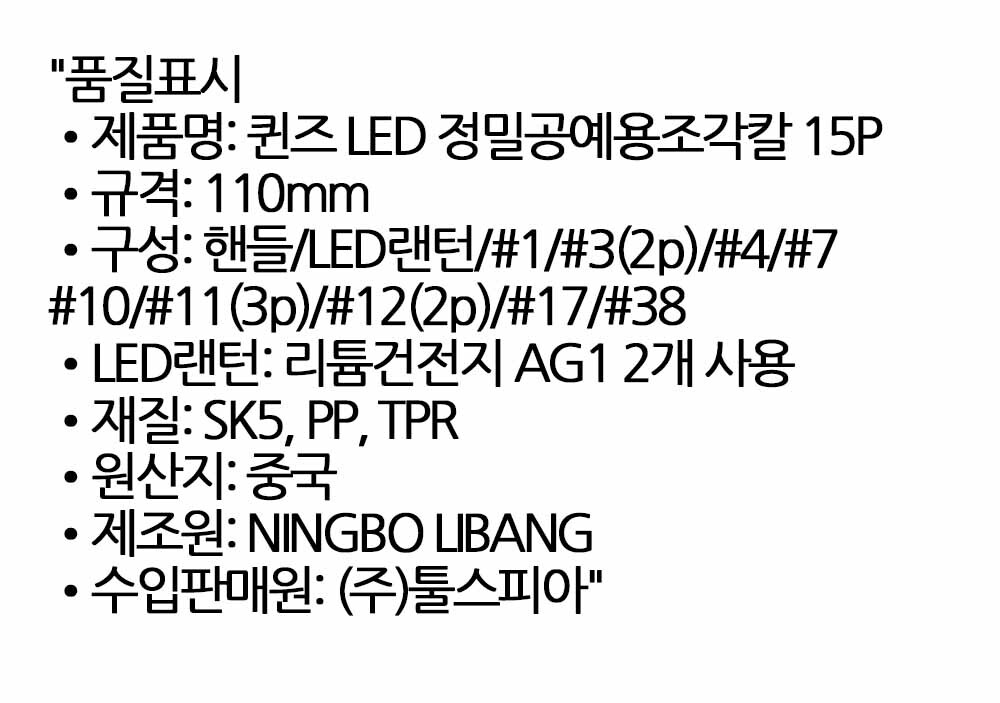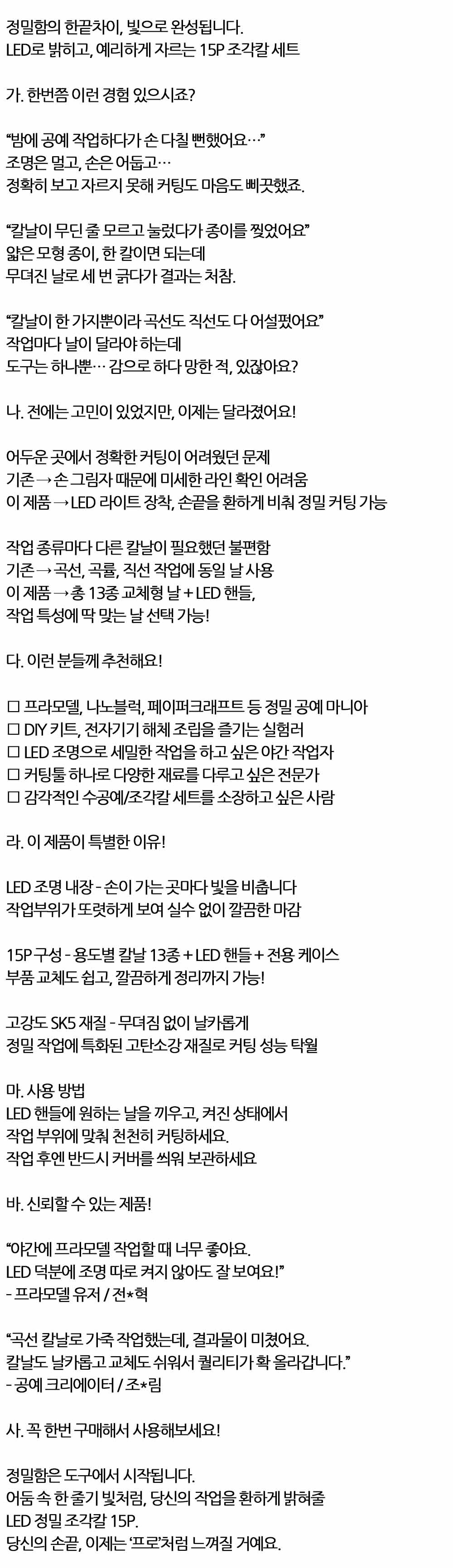 LED로 밝히고 예리하게 자르는 공예 정밀 조각칼 15P