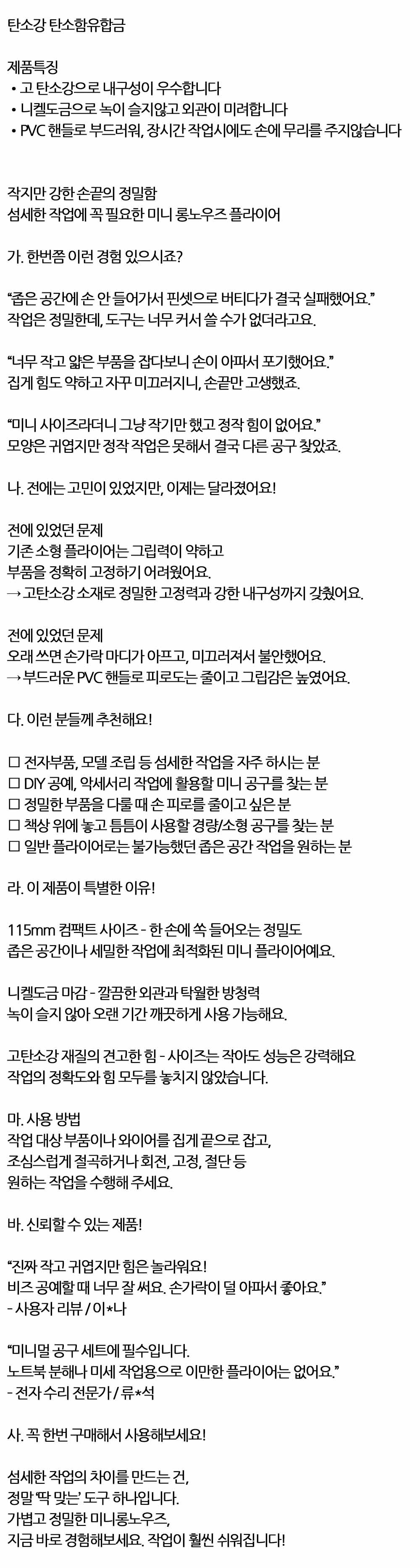 섬세한 작업에 꼭 필요한 공구 미니 롱노우즈 115mm