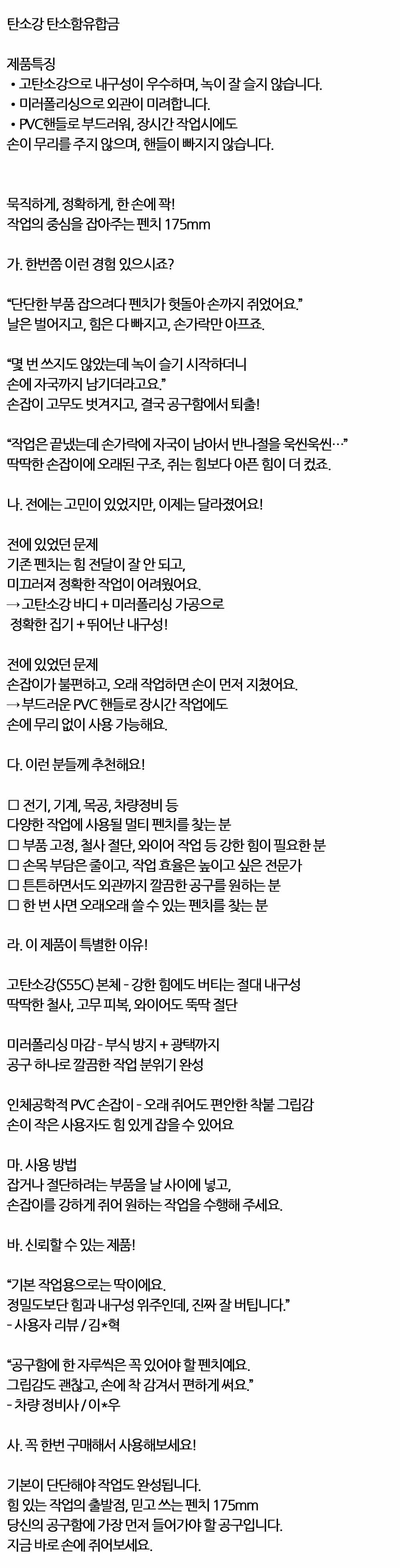 묵직 정확하게 작업의 중심을 잡아주는 펜치 175mm