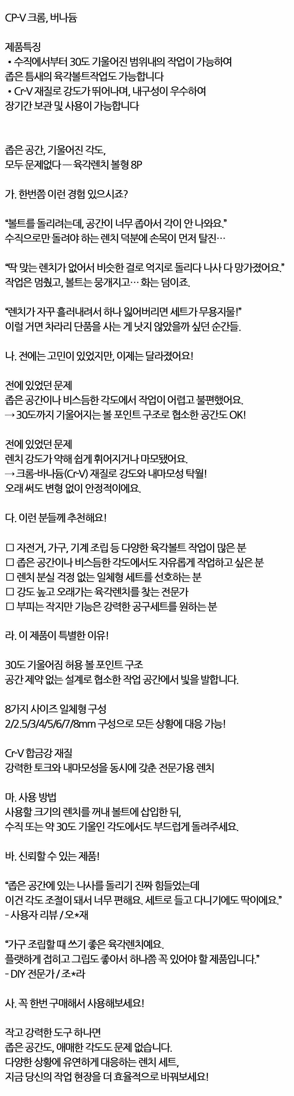 가구 조립할 때 쓰기 좋은 작업공구 육각렌치 볼형 8P