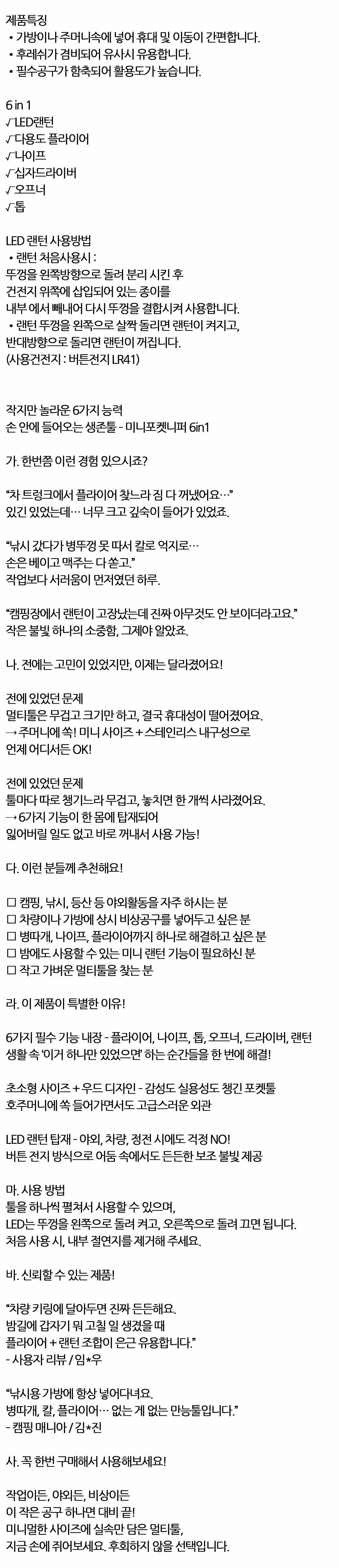 레저 차량 일상 비상상황 멀티툴 6 in 1 미니포켓니퍼