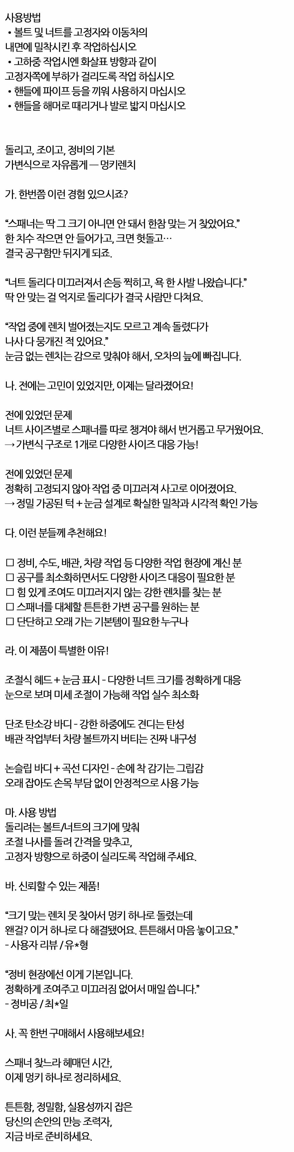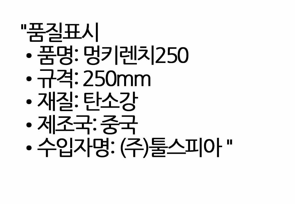 힘 있게 조여도 미끄러지지 않는 강한 멍키렌치 250mm