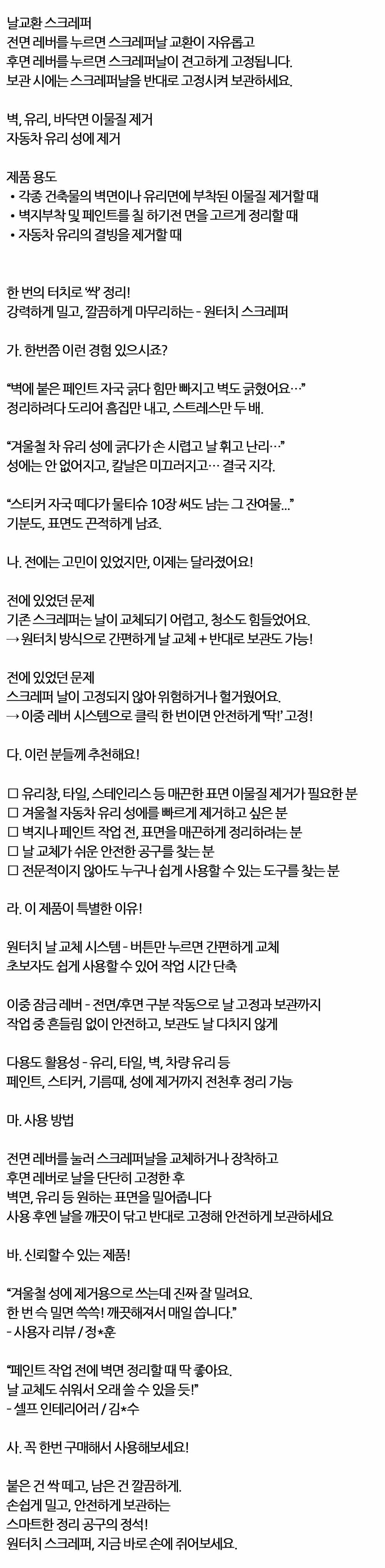 강력하게 밀고 깔끔하게 마무리하는 원터치 스크레퍼