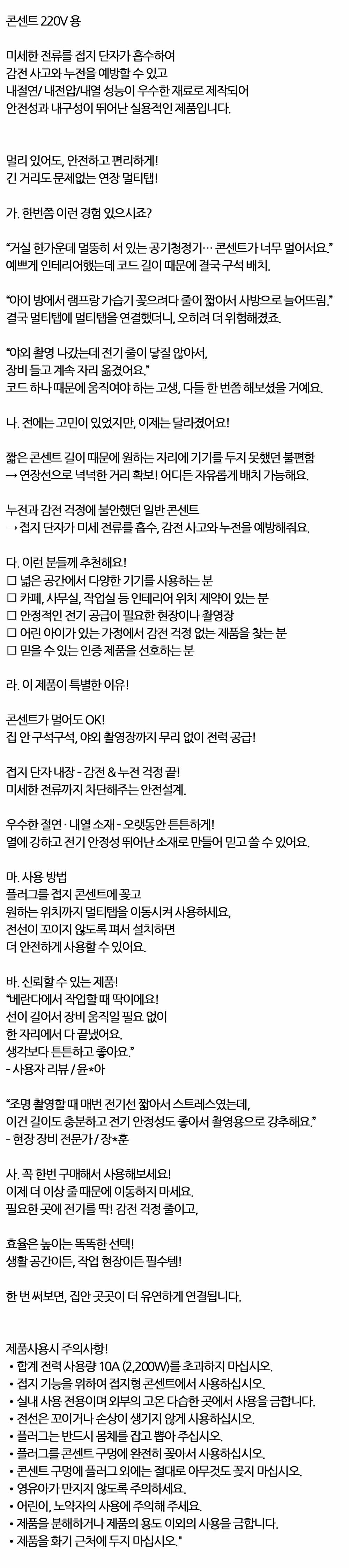 감전걱정 줄이고 효율은 높이는 안전한 멀티탭 3구 9M