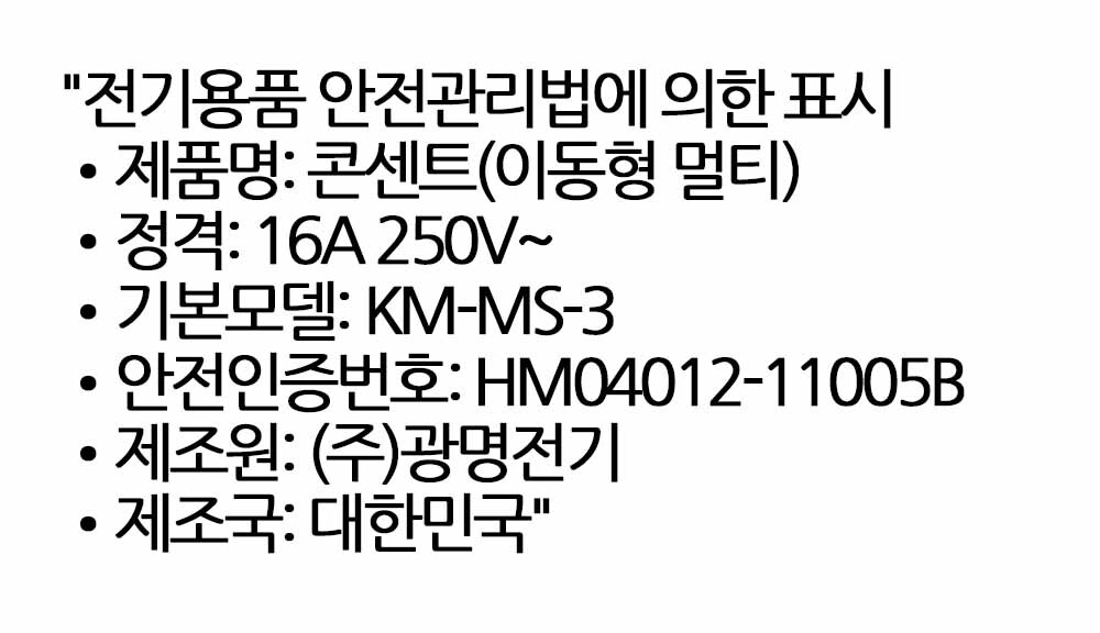 전기요금 절감 감전 예방 개별스위치 멀티탭 3구 2.4m