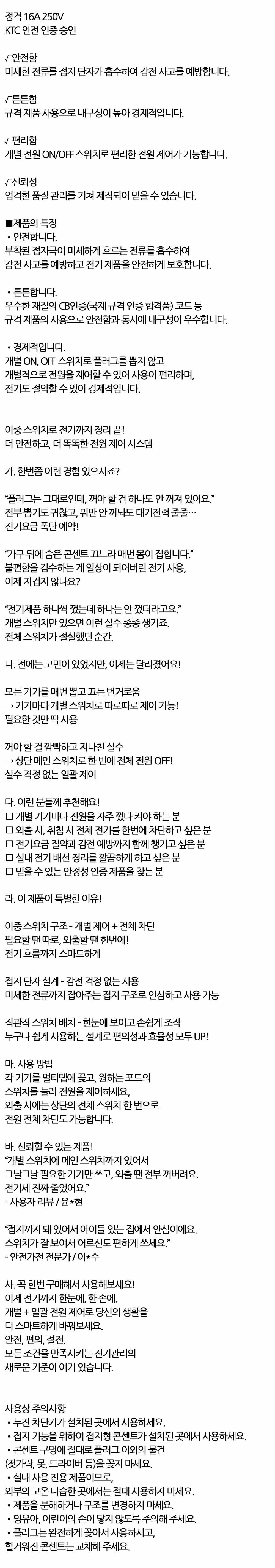 원하는 기기 ON OFF 이중개별 스위치 멀티탭 4구 4.4m