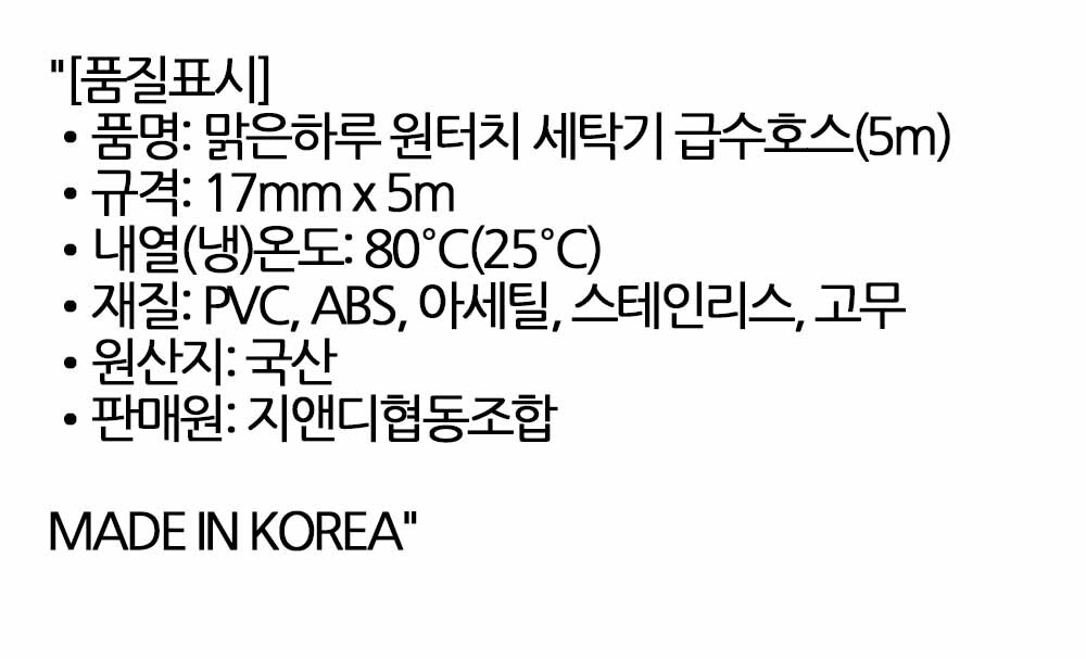 누구나 손쉽게 연결하는 원터치 세탁기 급수호스 5m