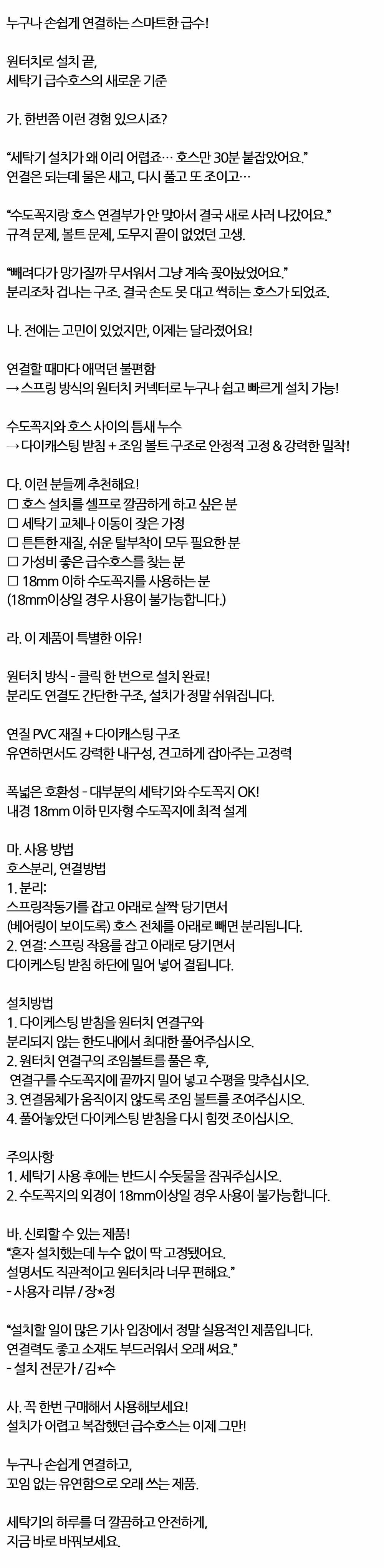 처음 써도 쉽게 설치하는 원터치 세탁기 급수호스 7m