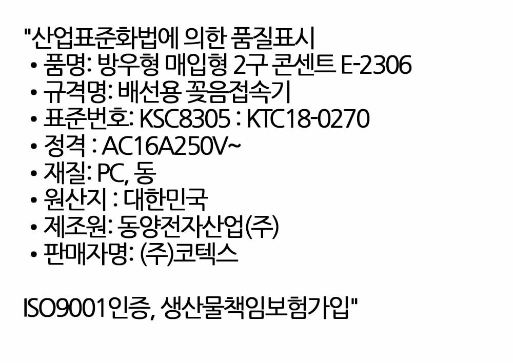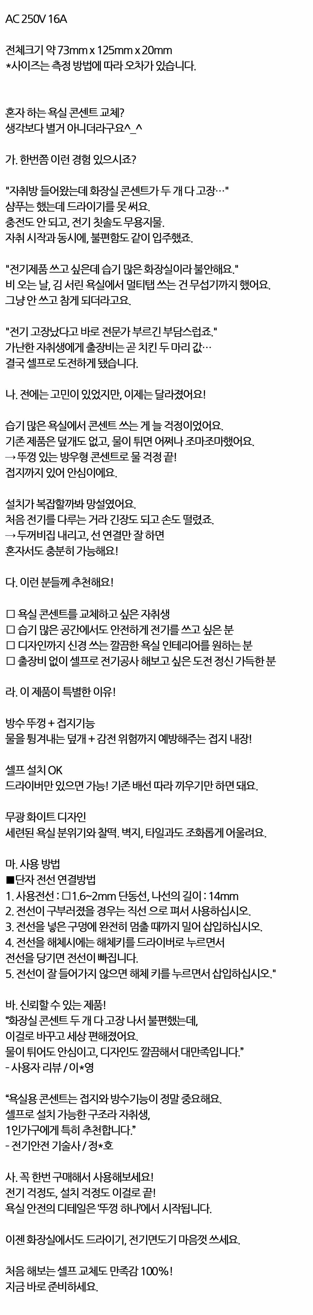 물을 튕겨내는 덮개 감전 위험예방 욕실용 2구 콘센트