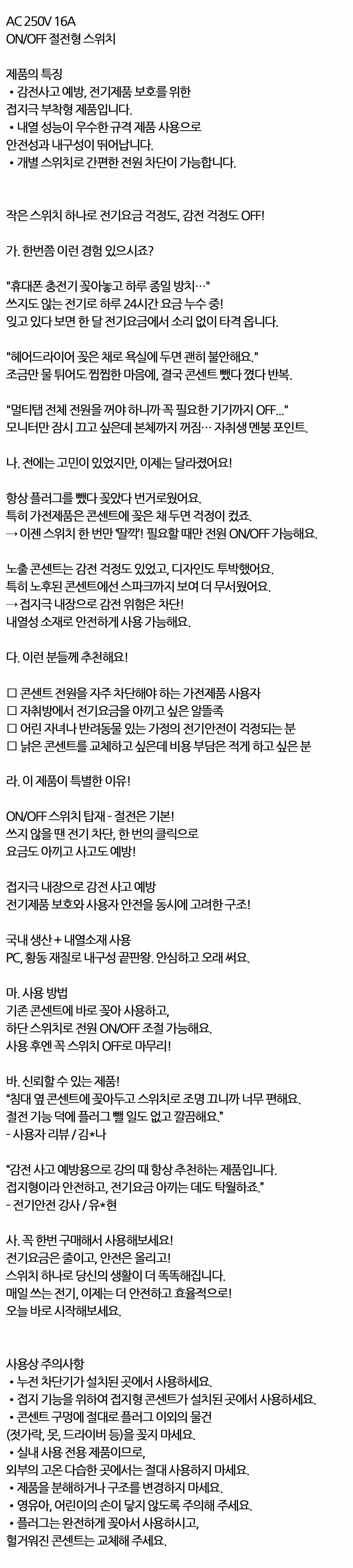 매일쓰는 전기 더 안전하고 효율적 1구 절전탭스위치