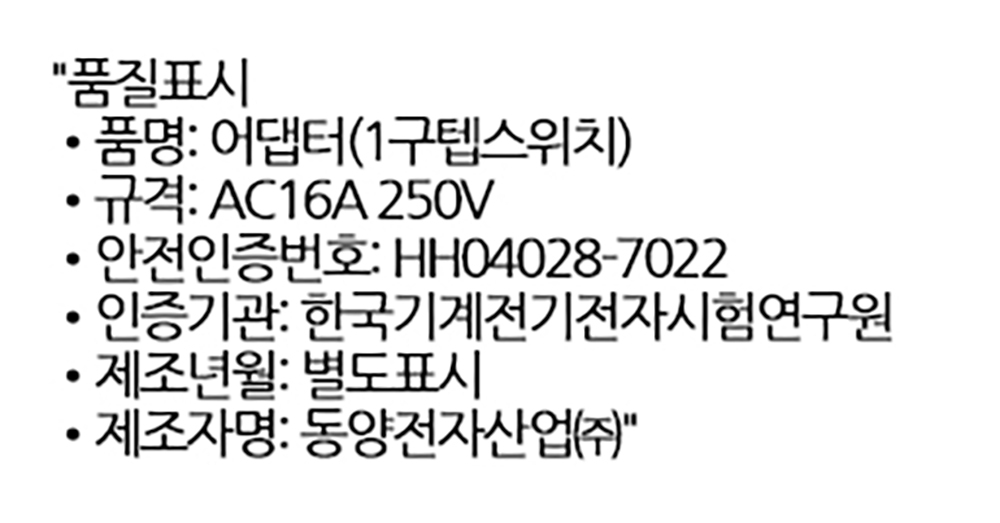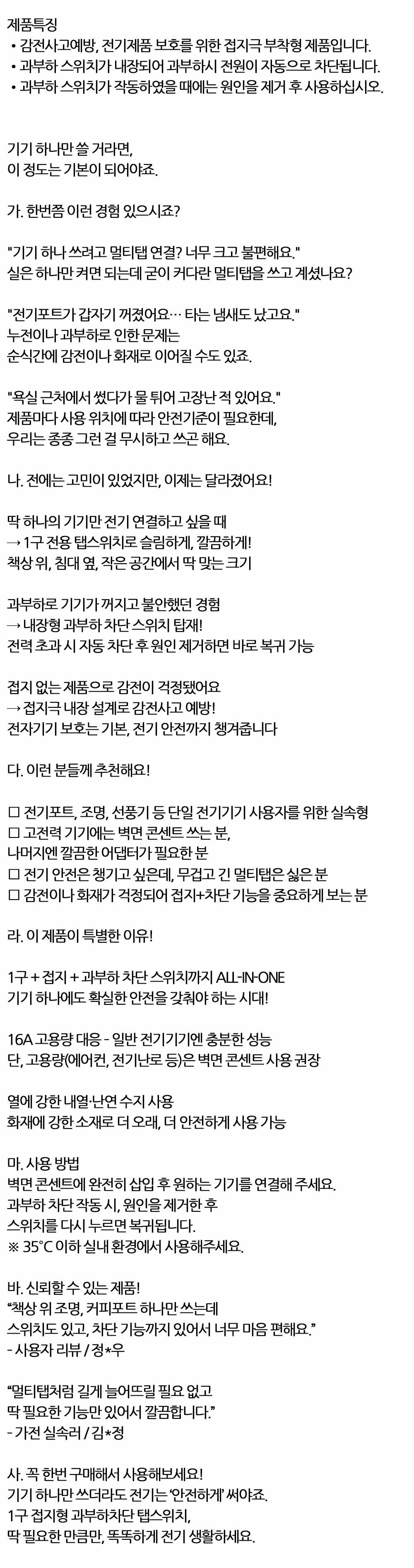 전력 초과 시 자동 차단 과부하차단형 1구 탭스위치