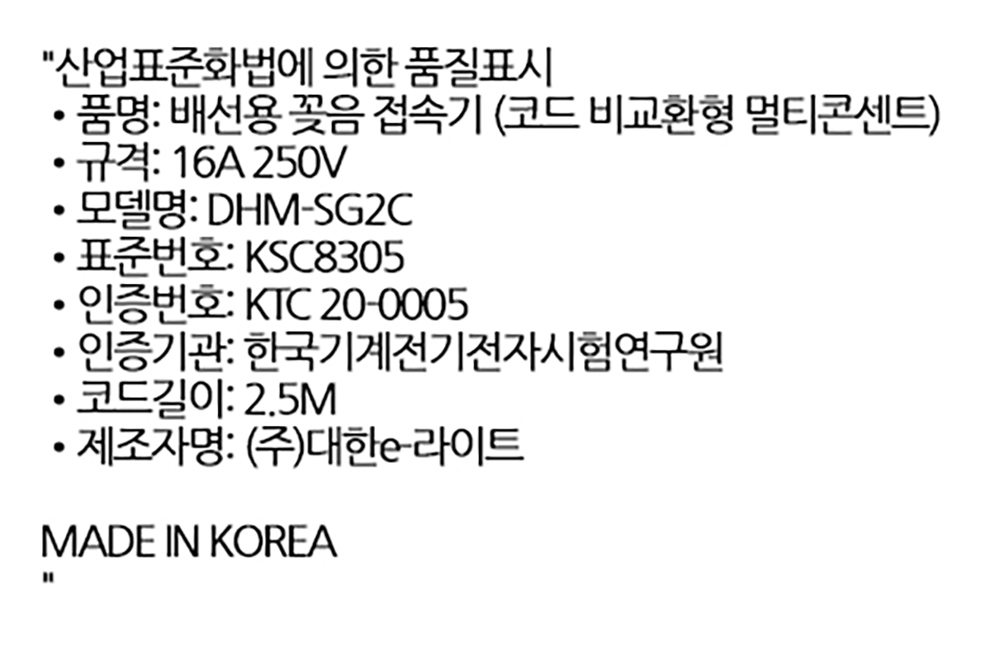 대기전력 차단 과열방지 개별스위치 멀티탭 2구 2.5M