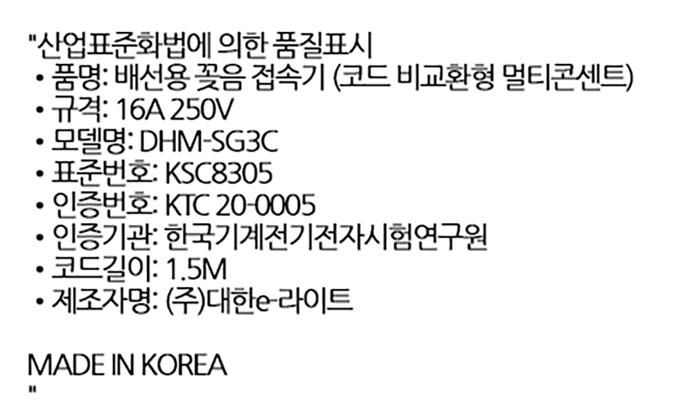 대기전력 차단 과열방지 개별스위치 멀티탭 3구 1.5M