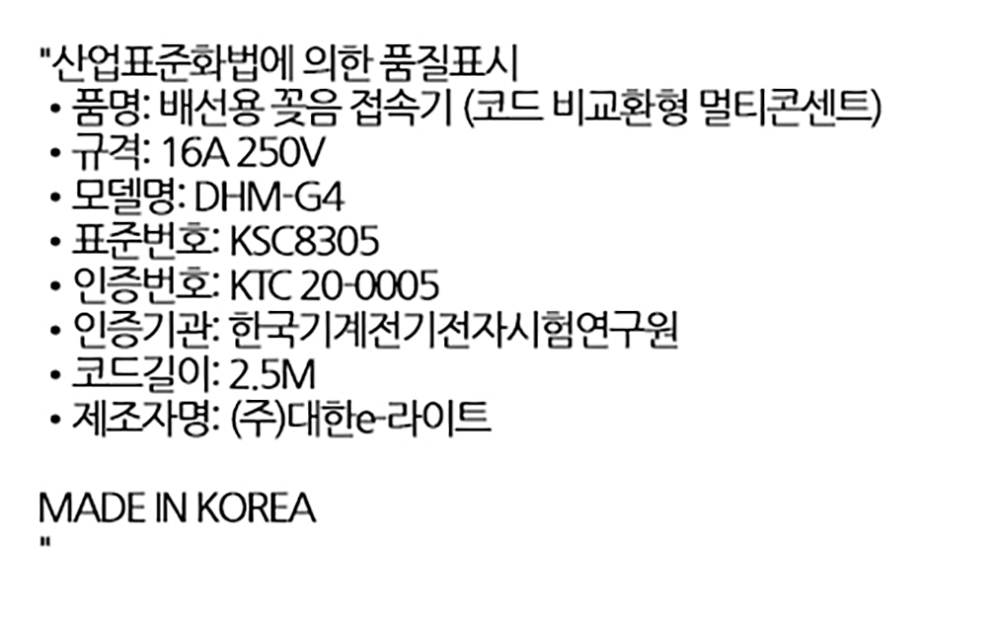 스위치 하나로 한번에 전원차단 접지 멀티탭 4구 2.5M