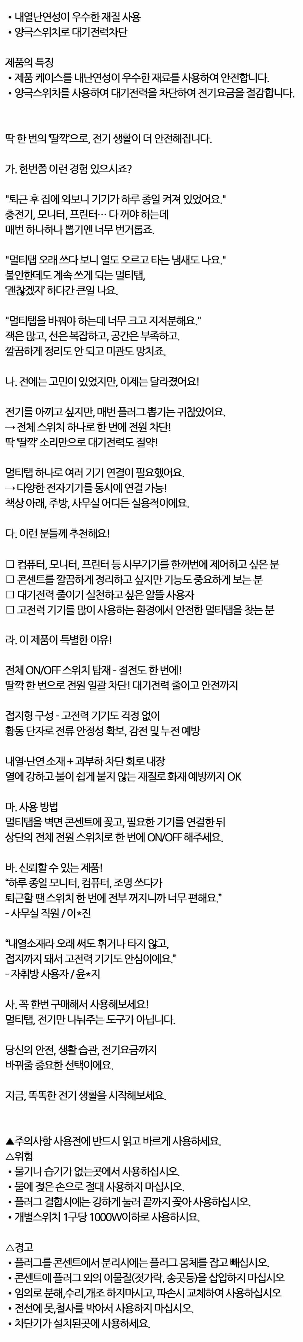 스위치 하나로 한번에 전원차단 접지 멀티탭 4구 4.5M