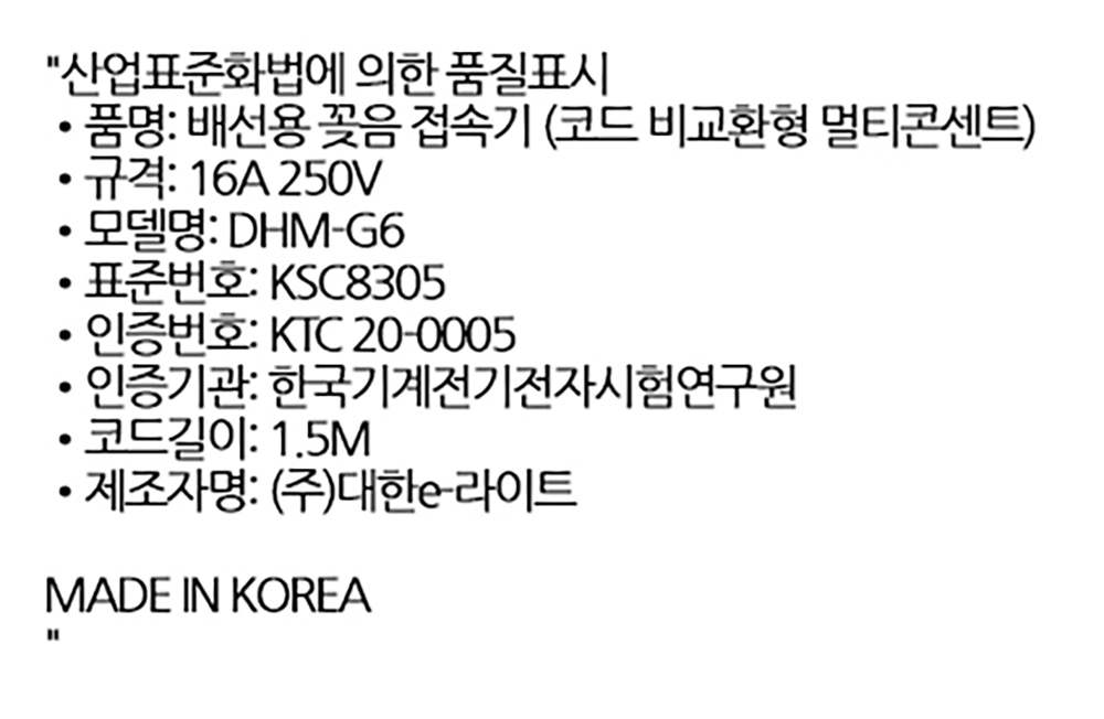 스위치 하나로 한번에 전원차단 접지 멀티탭 6구 1.5M