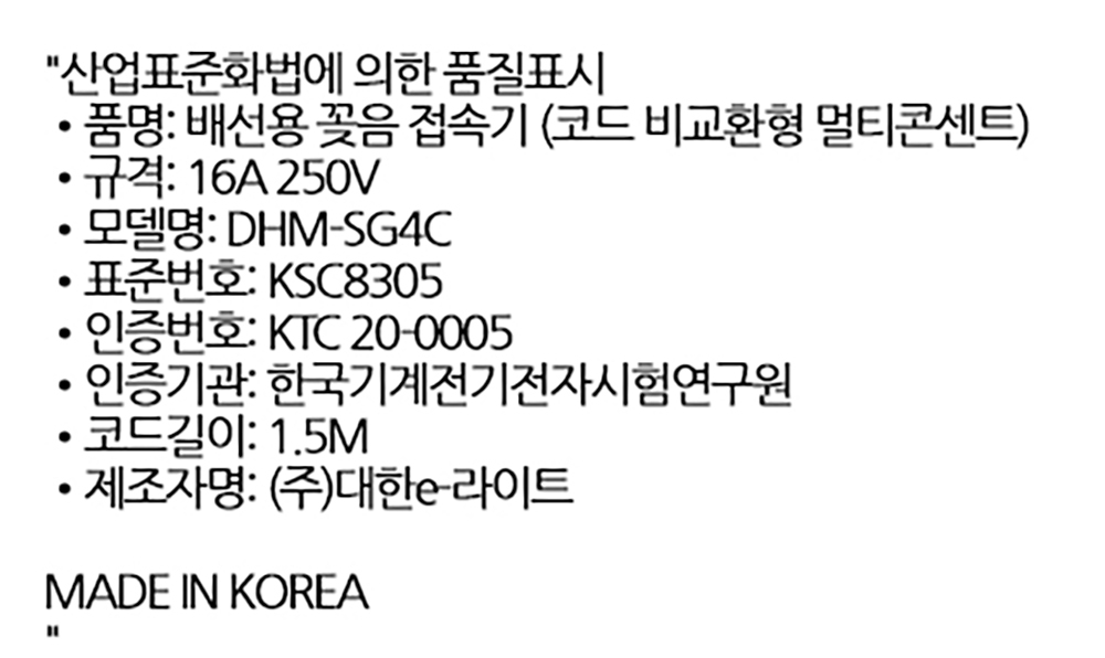 대기전력 차단 과열방지 개별스위치 멀티탭 4구 1.5M