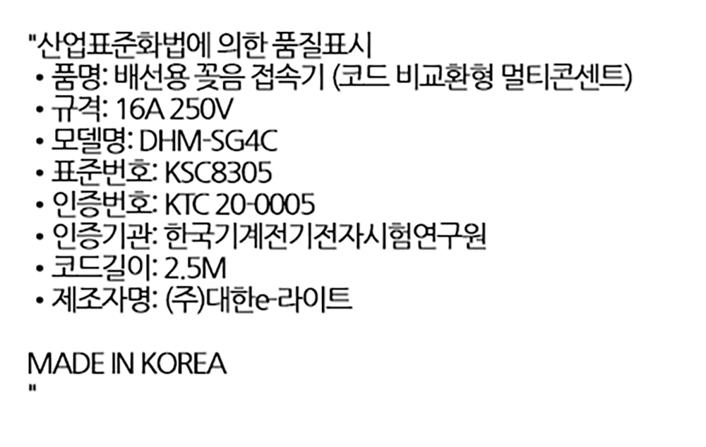 대기전력 차단 과열방지 개별스위치 멀티탭 4구 2.5M