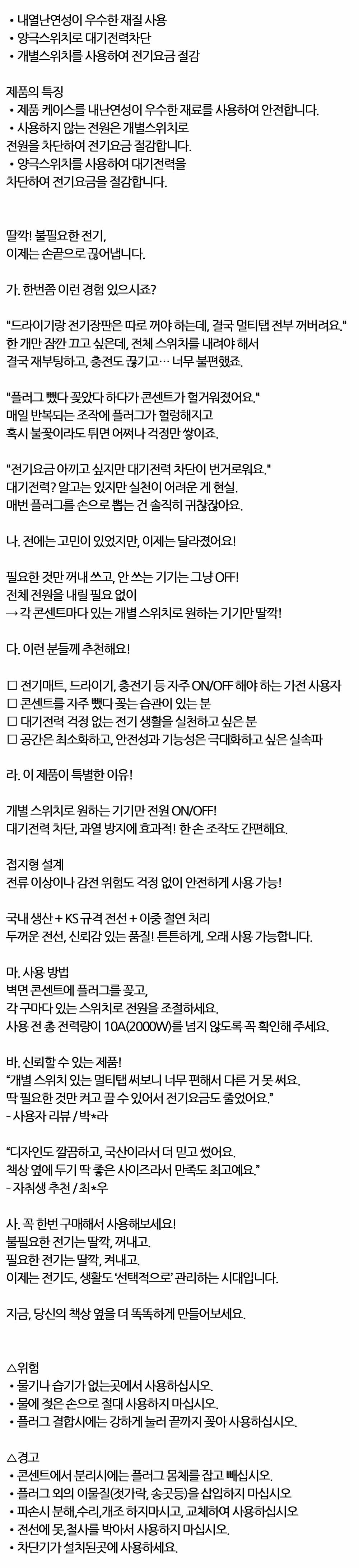 대기전력 차단 과열방지 개별스위치 멀티탭 5구 1.5M