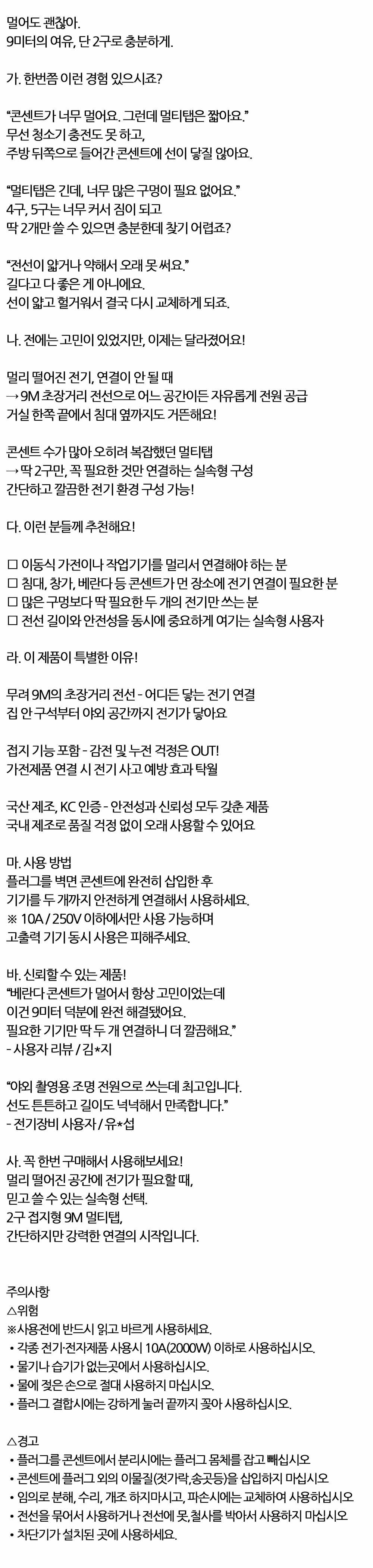 멀어도 괜찮아 9미터 여유 단 2구로 충분 접지멀티탭