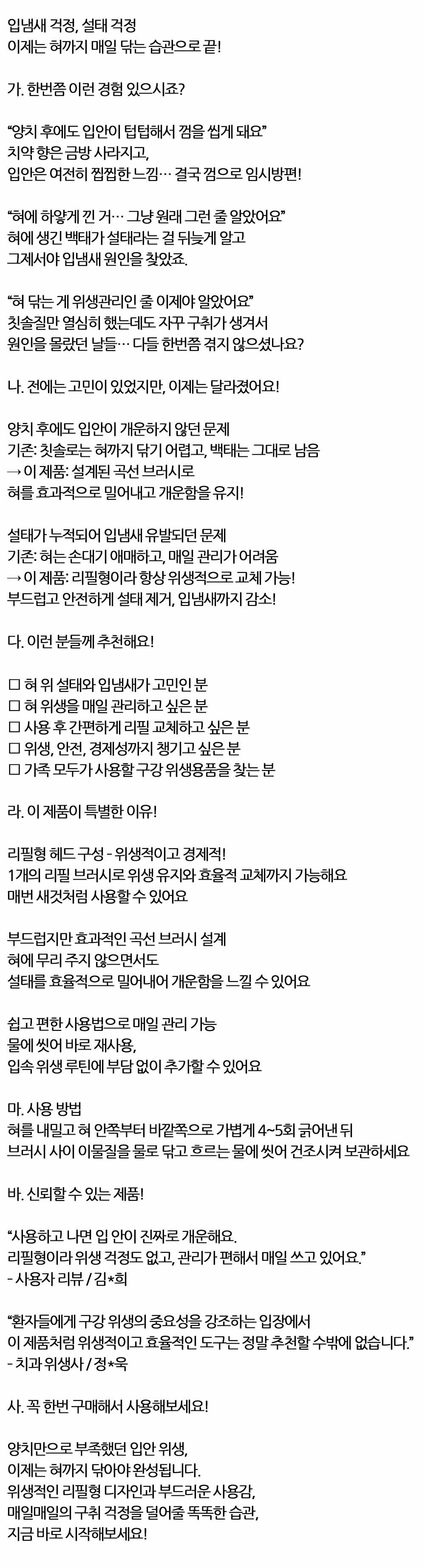 입냄새 걱정 설태 걱정 혀클리너 1입 리필형헤드 1입