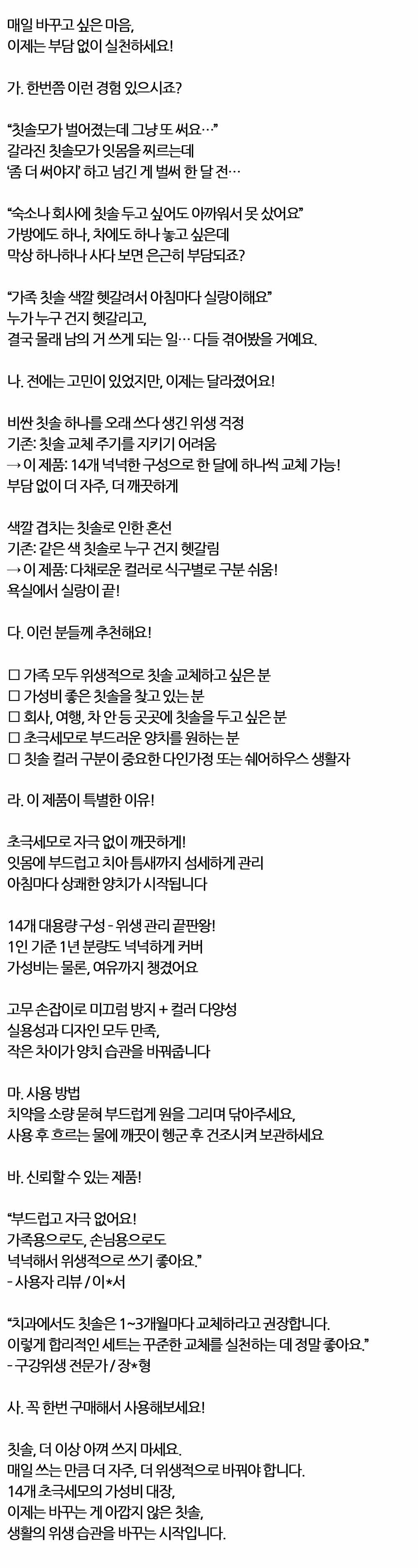 더 이상 아껴 쓰지 마세요 위생적 초극세모 칫솔 14입
