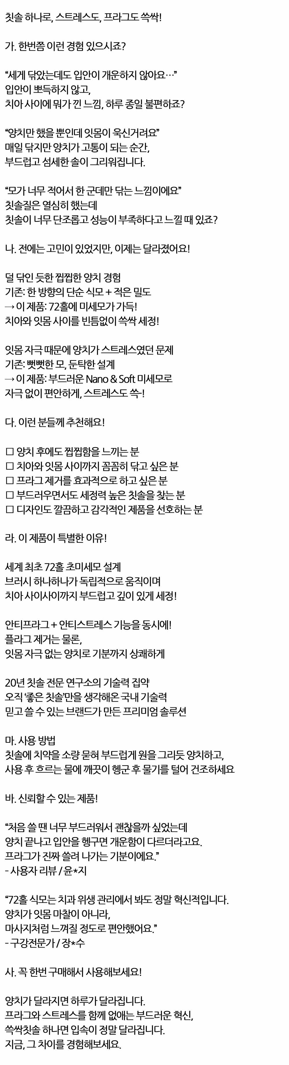 72홀 식모로 구성된 초미세모 설계 쓱싹칫솔 1P 블랙