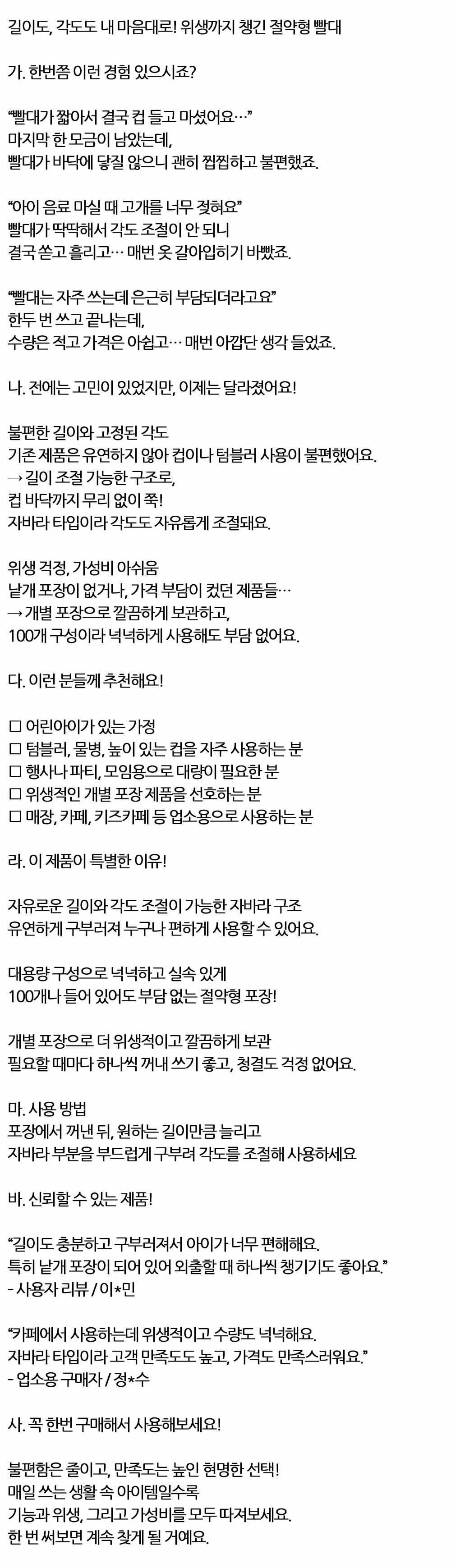 자바라 타입이라 각도 자유롭게 조절 빨대 100입 10봉