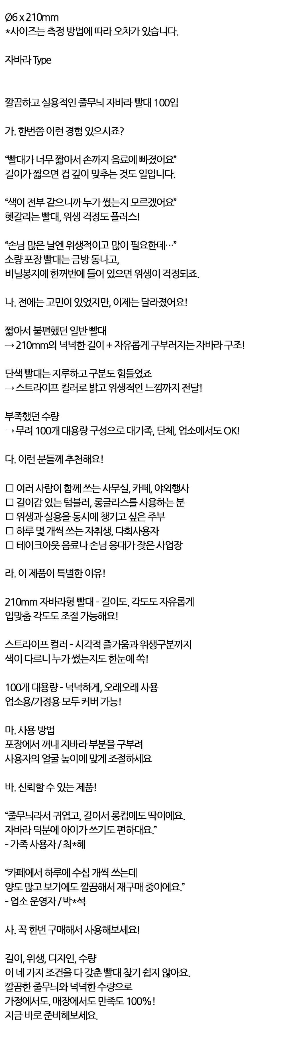 깔끔 실용적인 줄무늬 자바라 일회용 빨대 100입 10봉