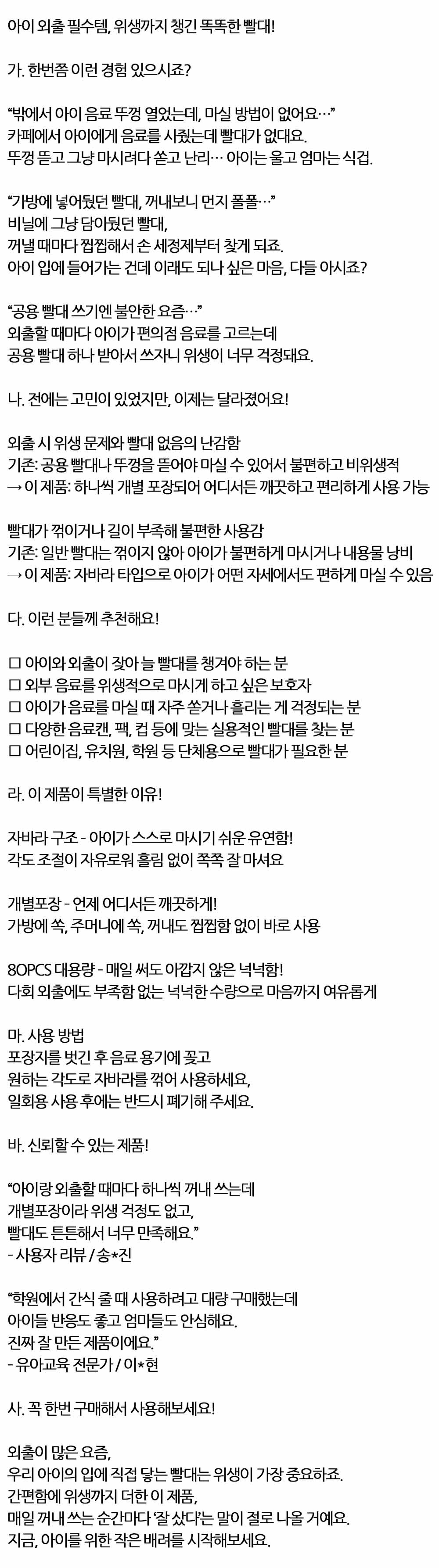 어린이집 유치원 학원 단체용 어린이빨대 80입 10봉