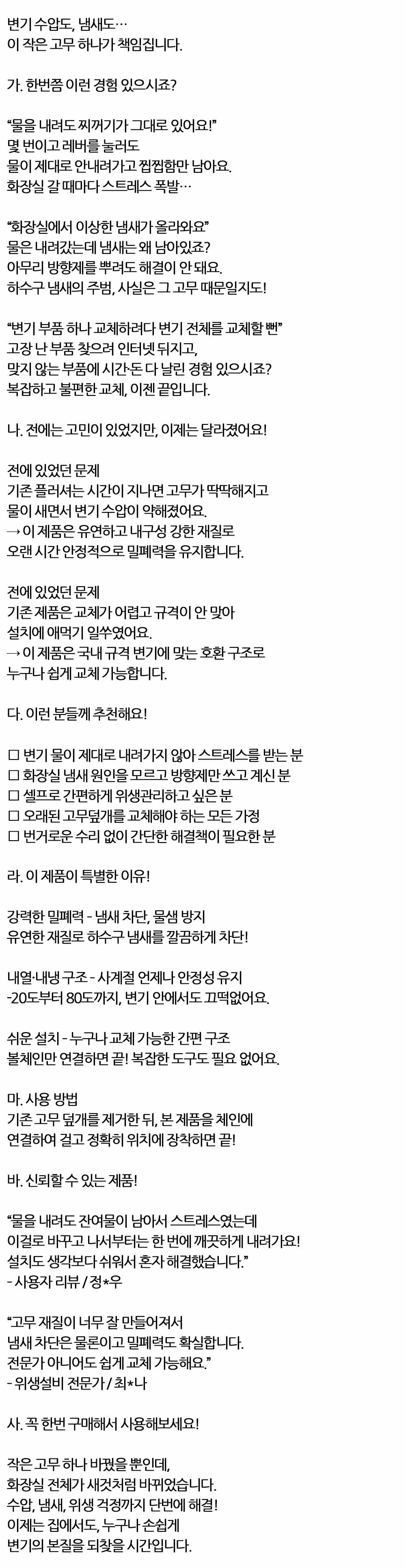 변기 물이 제대로 내려가지 않아 고민 양변기고무덮개
