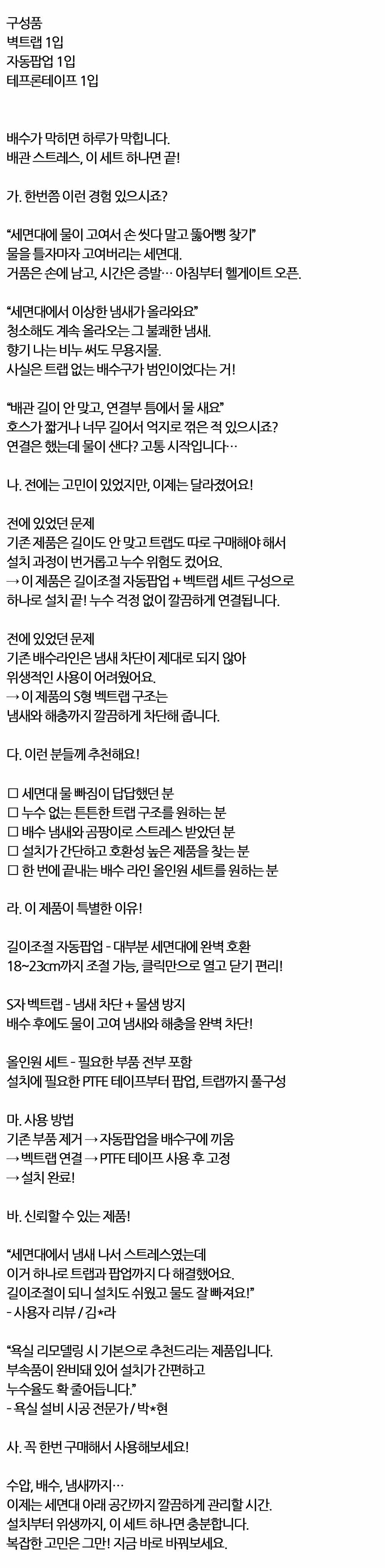 배수가 막히면 하루가 막힙니다 세면대 올인원 세트