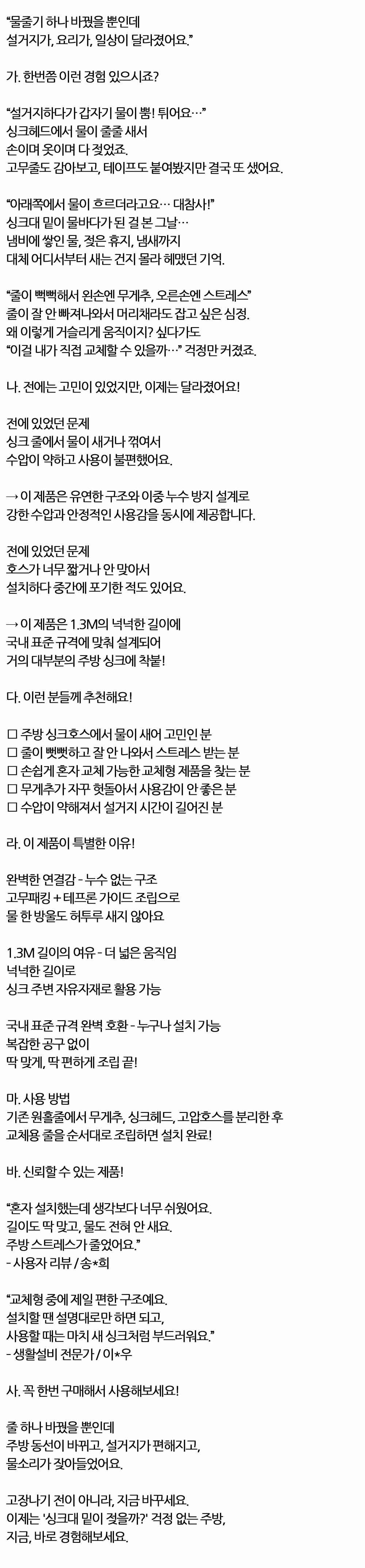 혼자 설치했는데 생각보다 쉬웠어요 씽크호스줄 1.3M