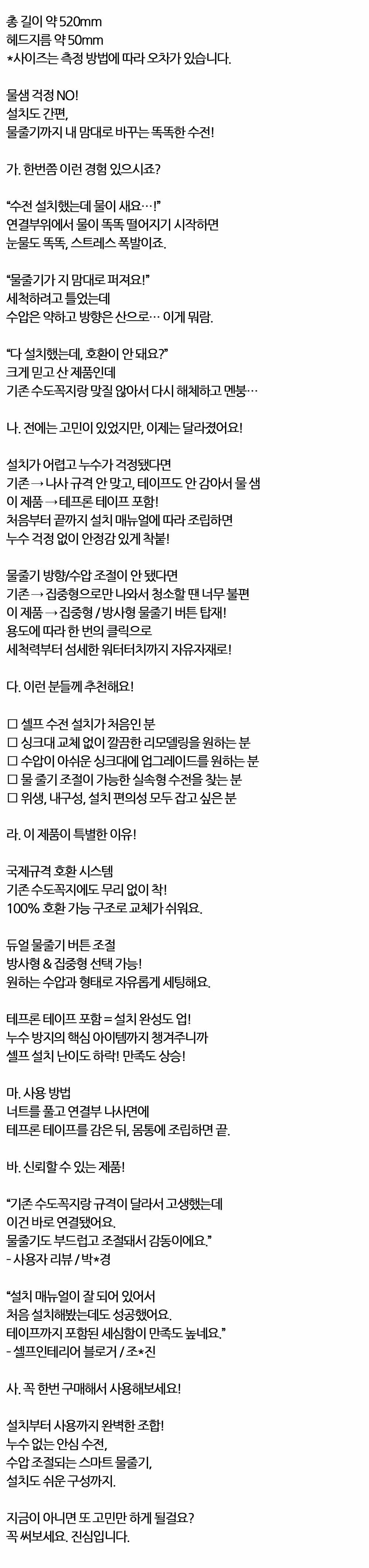 물줄기까지 내 맘대로 바꾸는 수전 코브라세트 가로형