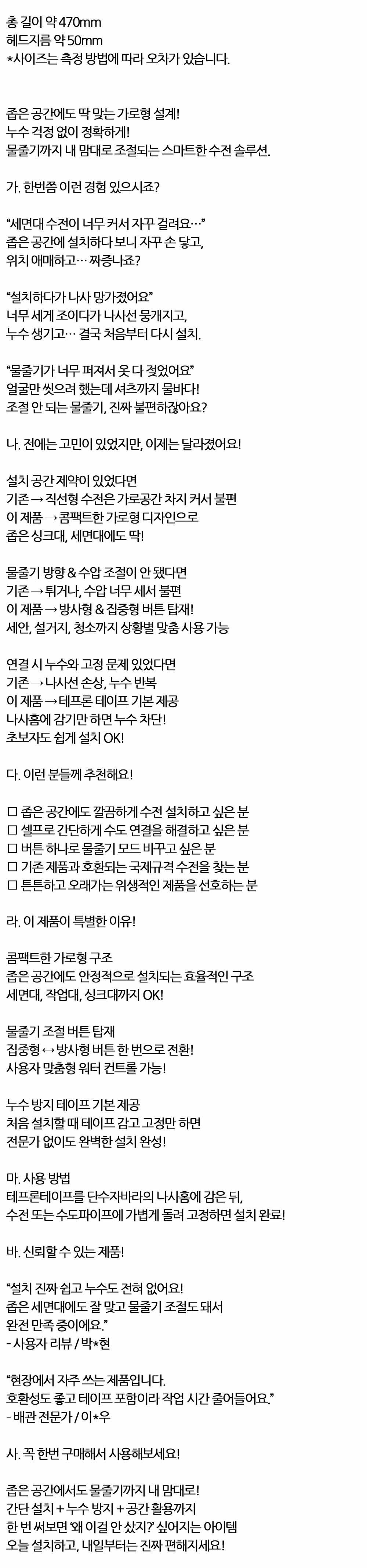 좁은 공간에도 딱 맞는 주방수전 단수자바라 가로형