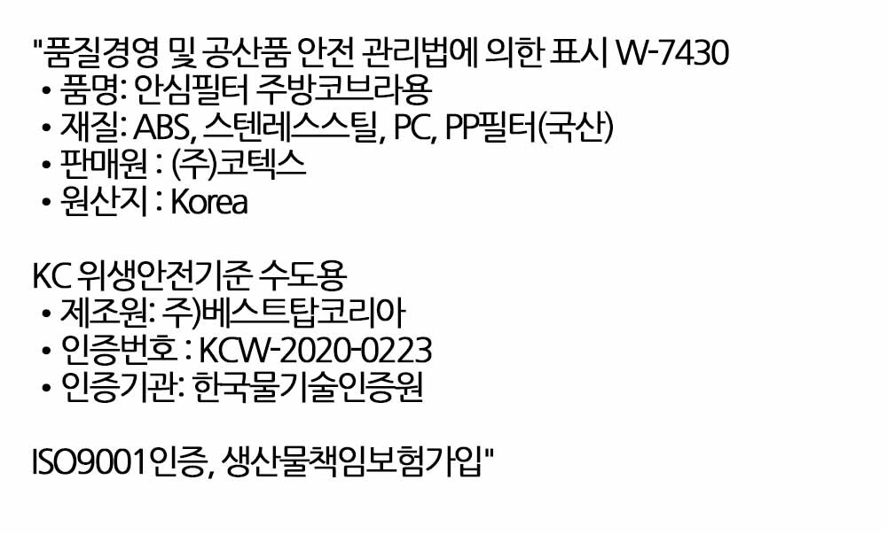 교체 가능한 필터 위생을 새롭게 주방수전 코브라헤드