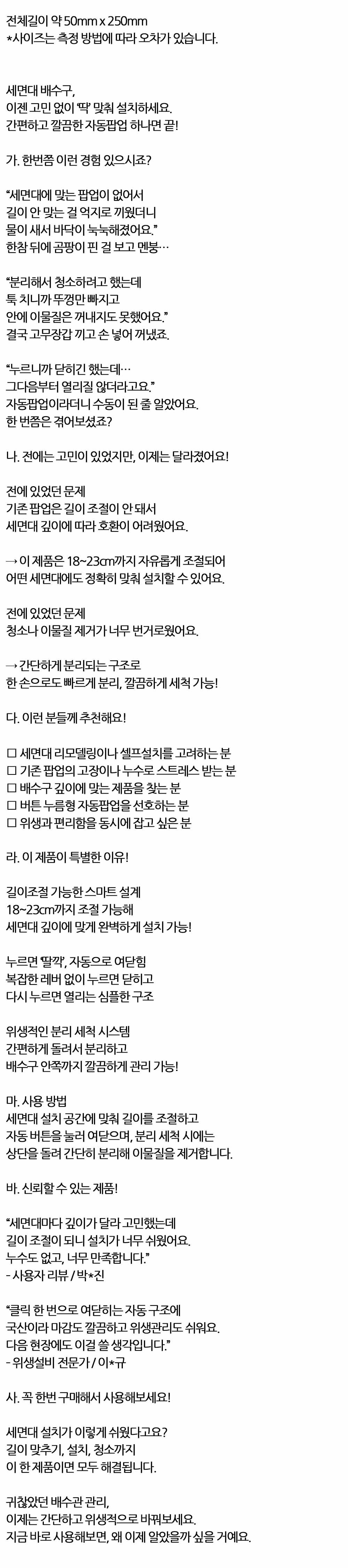 클릭 한번으로 여닫히는 구조 세면대 배수구 자동팝업
