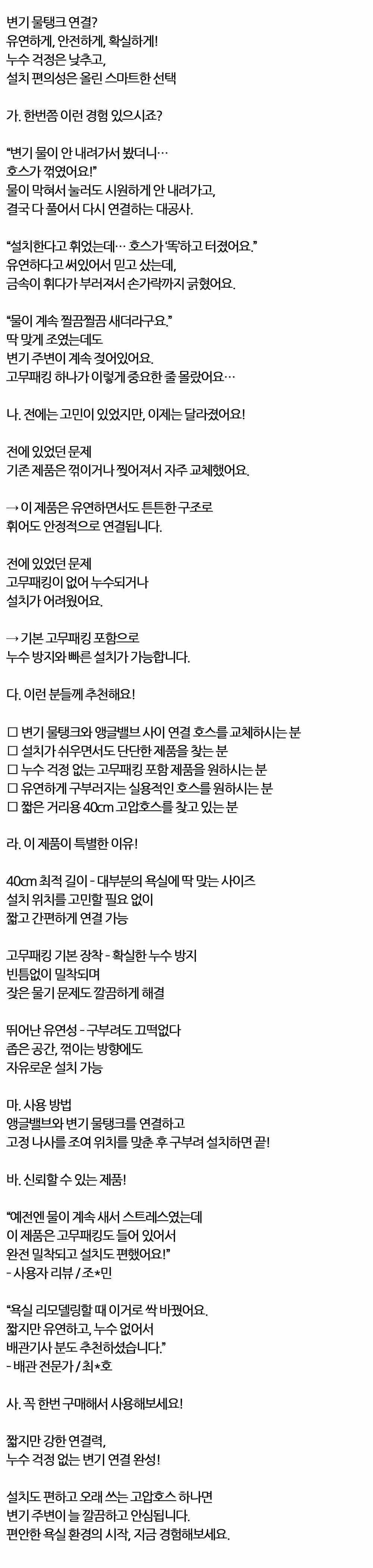 누수 방지와 빠른 설치가 가능 양변기 고압호스 40cm
