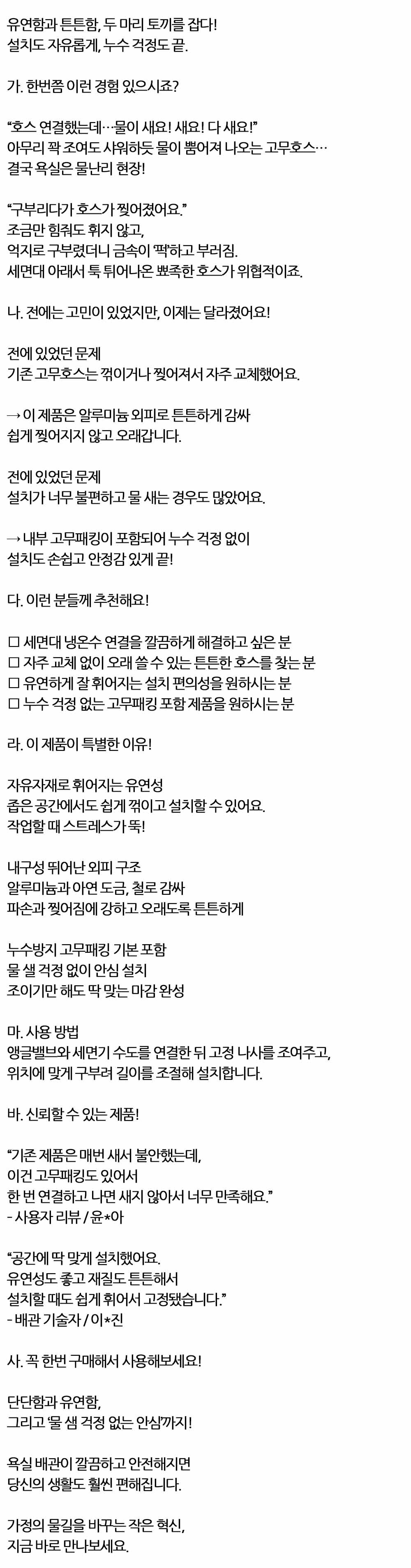 누수 걱정 없는 고무패킹 포함 세면기 고압호스 50cm