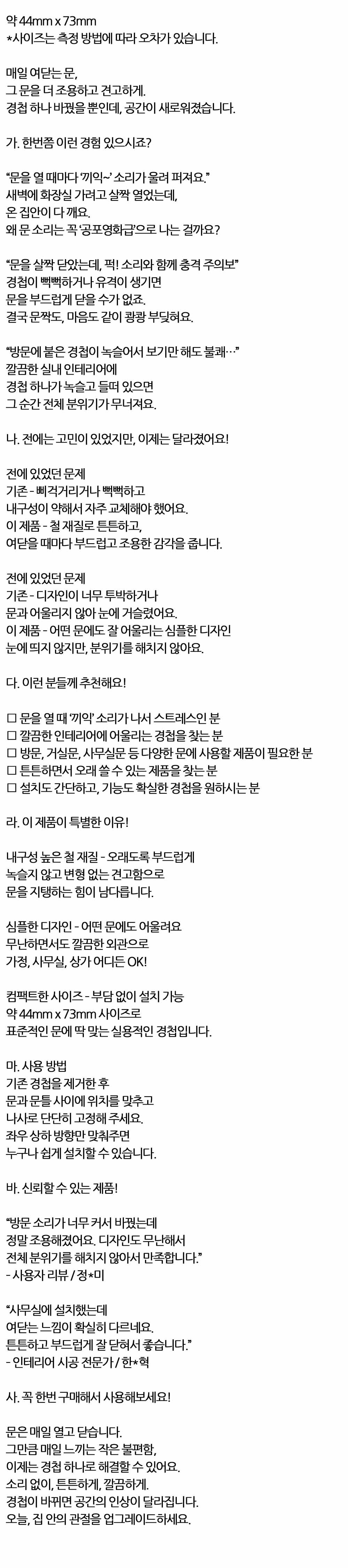 매일 여닫는 방문 문을 더 조용하고 견고하게 경첩 2P