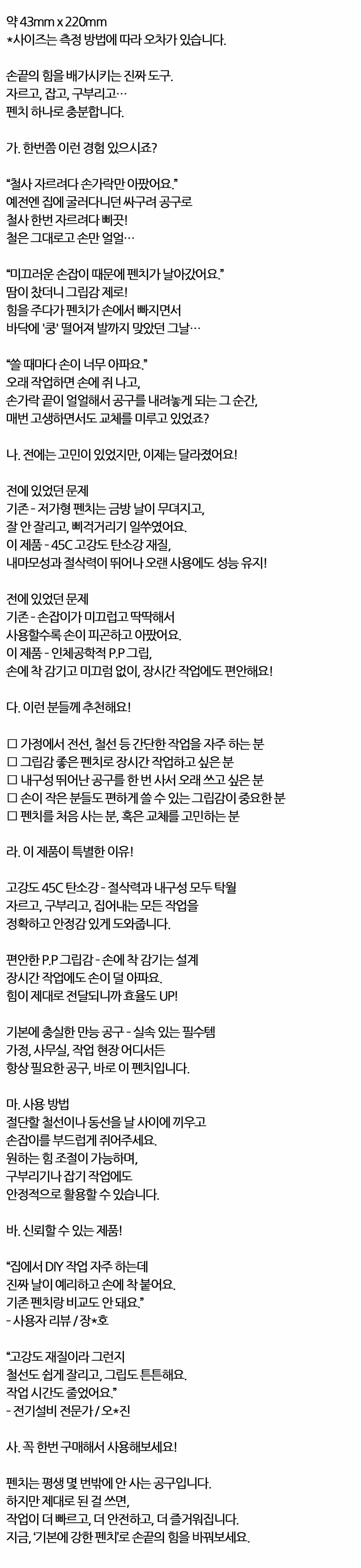 철사 자르려다 손가락만 아팠어요 공구 펜치 220mm