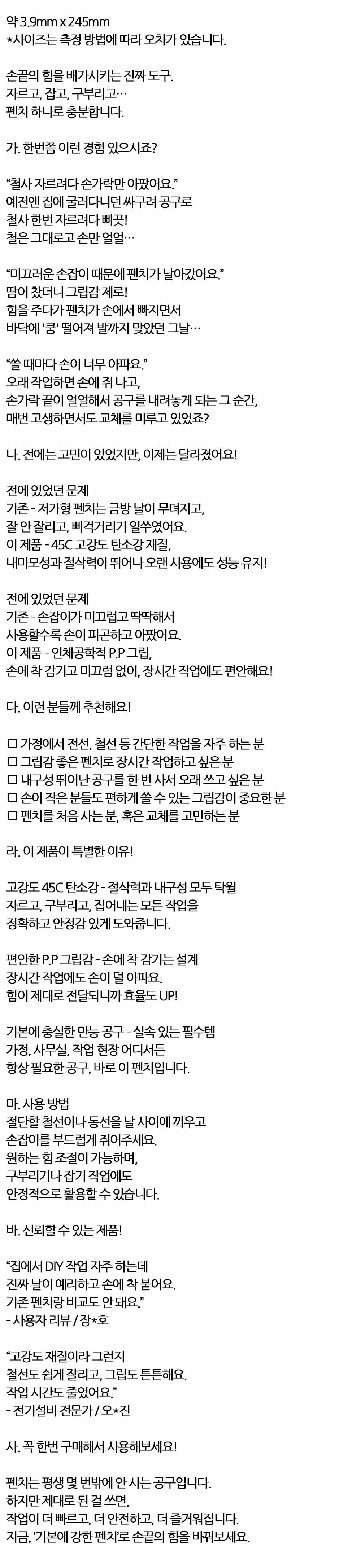 오래 작업하면 손에 쥐 나고 손이 아파요 펜치 245mm
