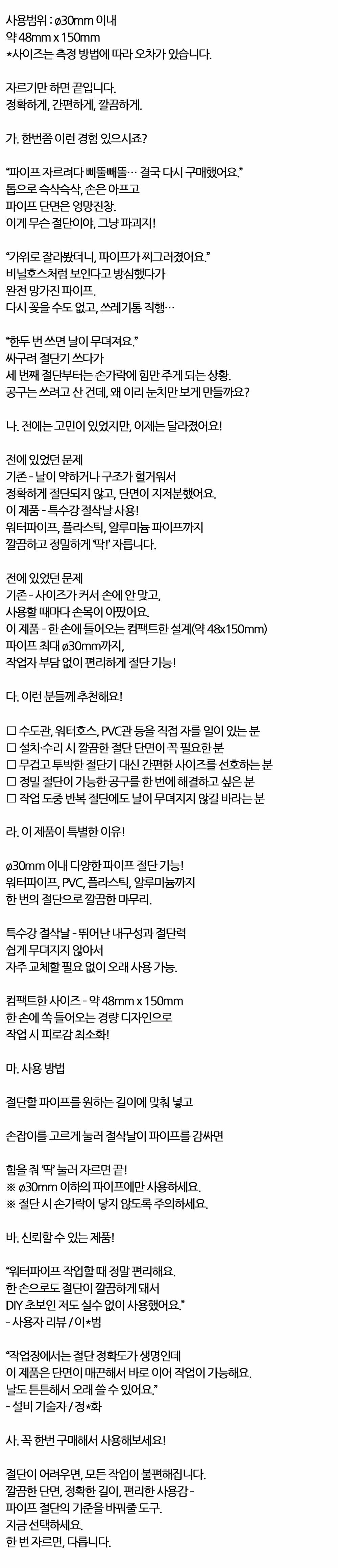수도관 워터호스 PVC관 자르기만하면 끝 파이프절단기