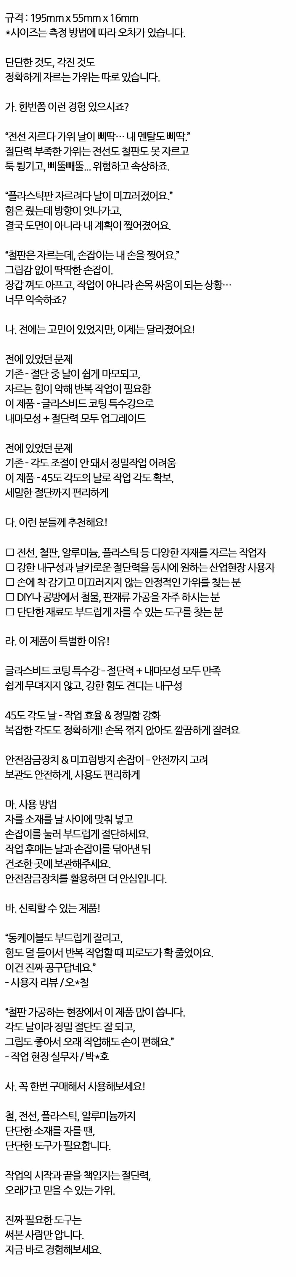 45도 각도날 정밀 세밀한 절단까지 편리하게 양철가위