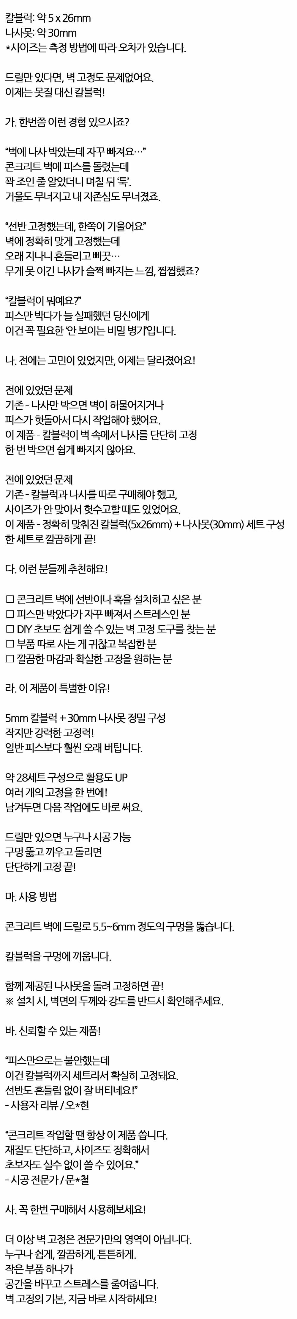 구멍 뚫고 끼우고 돌리면 고정 끝 나사못 칼블럭세트