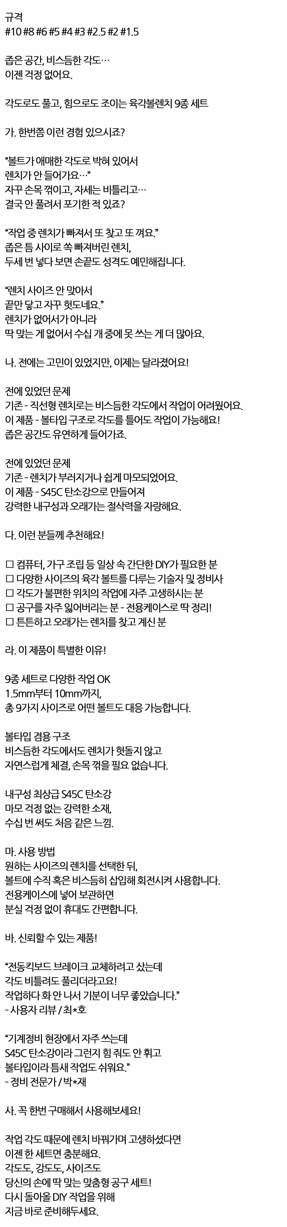 각도로도 풀고 힘으로도 조이는 육각볼렌치 9종 세트