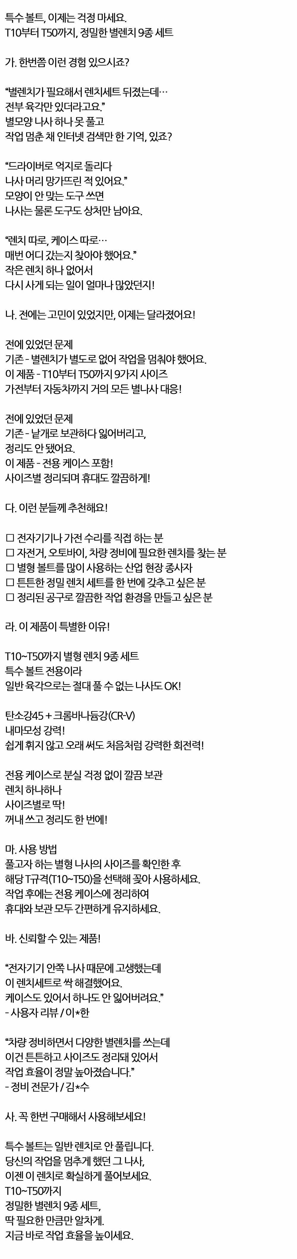 전용케이스로 분실 걱정없이 육각 별형 렌치 9종 세트