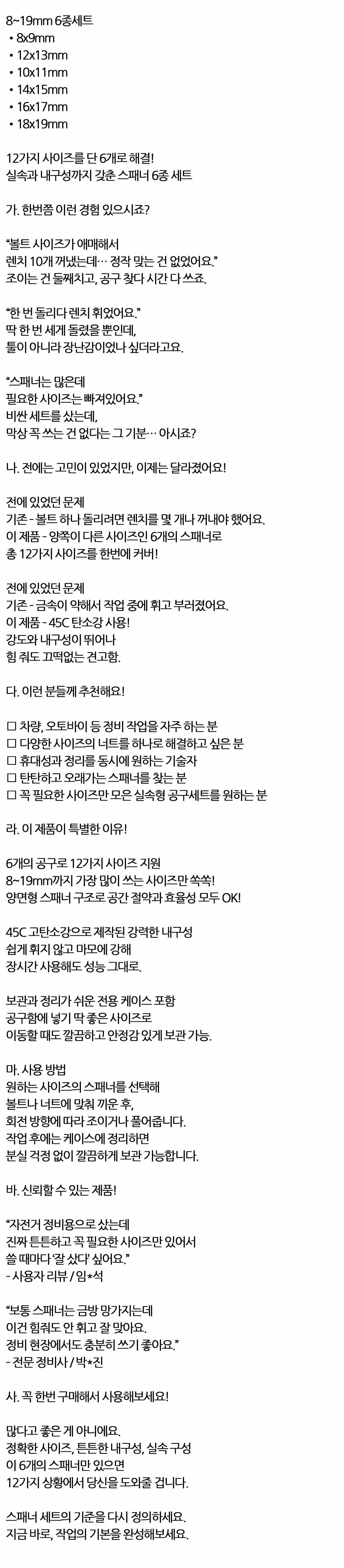 12가지 사이즈를 단 6개로 해결 공구 스패너 6종 세트