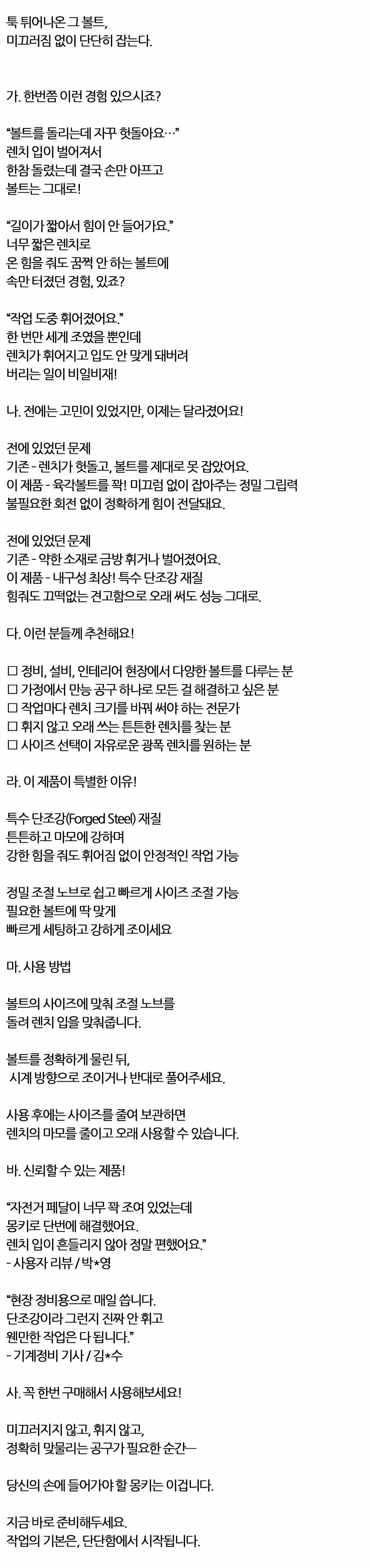 육각볼트를 꽉 미끄럼 없이 잡아주는 정밀 몽키 250mm