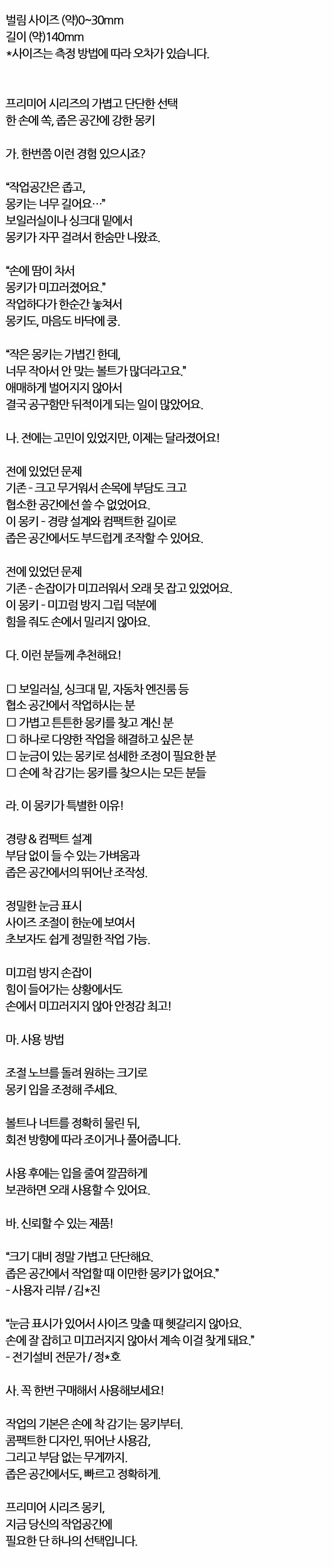 한 손에 쏙 좁은 공간에 강한 경량 컴팩트 몽키 140mm